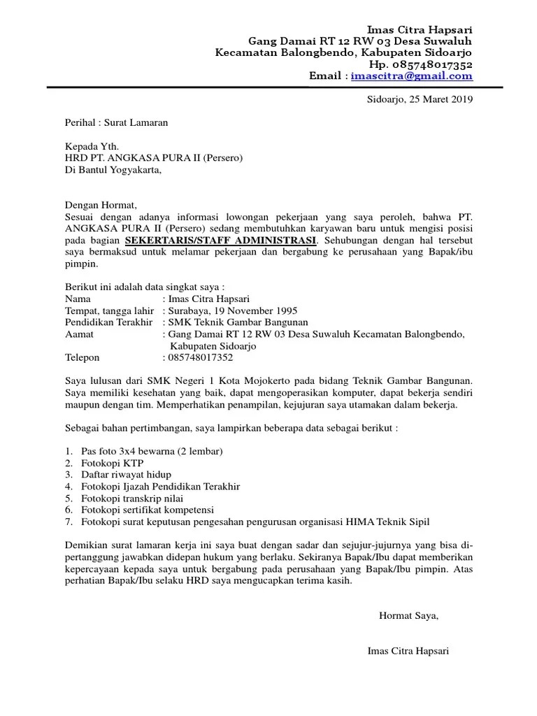 26+ contoh surat lamaran kerja di pt angkasa pura.